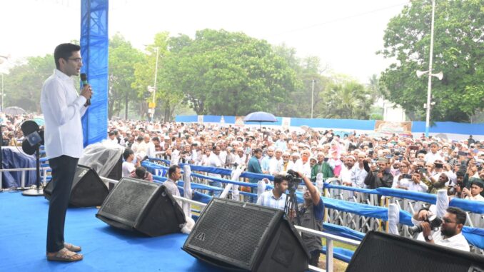 প্রতি বছরের মত এদিনও কলকাতার রেড রোডে নমাজ পড়তে উপস্থিত হন কয়েক হাজার মুসলিম ধর্মাবলম্বী মানুষ। অভিষেক ভাষণ শুরু করলে প্রত্যেকে করতালি দিয়ে অভিবাদন জানান। তৃণমূলের সর্বভারতীয় সাধারণ সম্পাদক, রমজান মাসে সকলের রোজা উপবাস প্রার্থনা পূরণ হওয়ার শুভকামনা জানিয়ে বলেন, এই দেশ সকলের। এখানে যেমন মন্দিরের ঘণ্টাধ্বনি শোনা যায়, সেভাবেই ভেসে আসে আজানের সুর। এটাই ভারতবর্ষ। ধর্ম নিয়ে রাজনীতি করে যাঁরা একজনকে অন্যজনের সঙ্গে লড়িয়ে দিতে চায়, একে অন্যের বিরুদ্ধে উস্কানি দেয়, তাঁরা যতই শক্তি প্রয়োগ করুক না কেন বাংলার সম্প্রীতি নষ্ট করতে পারবে না। শেষ রক্তবিন্দু পর্যন্ত বাংলার সংস্কৃতিকে অটুট রাখার অঙ্গীকারও করেন তিনি।