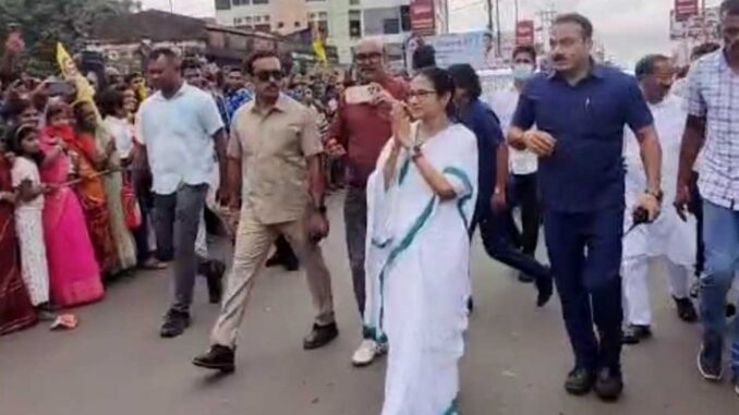দিঘাতে যাওয়ার পথে কাঁথিতে মানুষের ভিড় দেখে কনভয় থামিয়ে নেমে পড়লেন মুখ্যমন্ত্রী মমতা বন্দ্যোপাধ্যায়। পায়ে হেঁটে মানুষের কাছে পৌঁছলেন মুখ্যমন্ত্রী। ছোটদের আদর করলেন। বয়স্ক মানুষদের কাছে গিয়ে তাদের সঙ্গে কথা বললেন। সকলকে হাত নাড়িয়ে শুভেচ্ছা জানালেন। এক ঝাঁক স্কুল ছাত্রীর মাঝে দাঁড়িয়ে তাদের সঙ্গে সেলফি তুললেন মুখ্যমন্ত্রী। দিঘার জগন্নাথ মন্দিরের রথের শুভ সূচনা করতে যাওয়ার পথে কাঁথিতে মমতা বন্দ্যোপাধ্যায়কে ঘিরে সাধারণ মানুষের চরম উদ্দীপনা। এর বুধবার কাঁথিতে প্রমাণ হল মমতা বন্দ্যোপাধ্যায়ের জনপ্রিয়তা রয়েছে সেই শীর্ষে। এদিকে, মুখ্যমন্ত্রীর নির্দেশে রথযাত্রার আগেই দিঘায় হোটেল ভাড়ায় লাগাম টানতে কড়া প্রশাসন। অমান্য করলে কঠোর শাস্তি। হবে ১ লক্ষ টাকা জরিমানা। আসন্ন রথযাত্রায় দিঘায় আগত পর্যটকদের সুষ্ঠু ও নির্বিঘ্ন ভ্রমণ নিশ্চিত করতে এবং হোটেল ভাড়ায় লাগাম টানতে কড়া প্রশাসন।