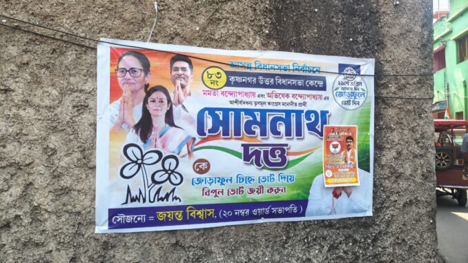 তৃণমূলের ব্যানারের উপর বিজেপির পোস্টার, উত্তেজনা কৃষ্ণনগর উত্তরে