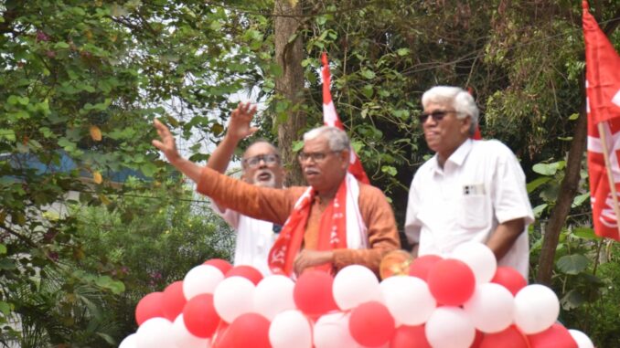 রমিত সরকার, কৃষ্ণনগর : নির্বাচনী প্রচারের অন্তিম দিনে কৃষ্ণনগর উত্তর বিধানসভা কেন্দ্রে রাজনৈতিক উত্তাপ চরমে পৌঁছায়। সিপিআইএম প্রার্থী অদ্বৈত বিশ্বাসের সমর্থনে গেট রোড শ্মশান কালী বাড়ি থেকে এক বিশাল মিছিলের আয়োজন করা হয়। জেলা ও স্থানীয় নেতৃত্বের উপস্থিতিতে এই মিছিল এলাকাজুড়ে প্রচারের শেষ বার্তা পৌঁছে দেয় এবং ভোটারদের কাছে সমর্থনের আহ্বান জানানো হয়।