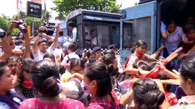 ইউনাইটেড টিচিং এন্ড নন টিচিং ফোরামের সদস্যরা এদিন হাজরা মোড় জমায়েত হয়ে মুখ্যমন্ত্রীর বাড়ি অর্থাৎ কালীঘাটের দিকে রওনা দেন। সেখানে পৌঁছতেই তাঁদের বাধা দেয় পুলিশ। পুলিশের বাধা অতিক্রম করে তাঁরা এগিয়ে যেতে চাইলে তুমুল বচসা শুরু হয়। এরপর তাঁদের আটক করে প্রিজন ভ্যানে তোলে পুলিশ। এদিকে এই ঘটনাকে কেন্দ্র করে হাজরা মোড়ে তীব্র উত্তেজনাও সৃষ্টি হয়।