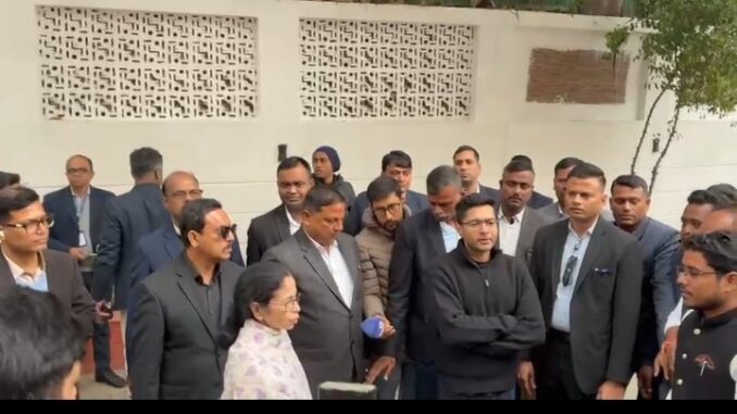 রোজদিন ডেস্ক : প্রচণ্ড ঠান্ডার মধ্যে সোমবার সাতসকালে রাজধানী দিল্লিতে প্রত্যাশা মতোই রাজনৈতিক উত্তাপ ছড়ালেন মুখ্যমন্ত্রী মমতা বন্দ্যোপাধ্যায়। আজ বিকেলেই তাঁর মুখ্য নির্বাচন কমিশনার জ্ঞানেশ কুমারের সঙ্গে বৈঠক রয়েছে। তার এদিন সকালে কেন্দ্রীয় সরকার তথা দিল্লি পুলিশের ভূমিকা নিয়ে সরব হলেন তিনি। তাঁর নির্দেশে কয়েকদিন আগেই এসআইআর ‘আতঙ্কে’ মৃতদের পরিবারের সদস্য এসআইআর হয়রানির শিকার কিছু পরিবার দিল্লিতে এসেছেন। তাঁরা আপাতত বঙ্গভবনে রয়েছেন। কিন্তু অভিযোগ তাঁদের নানা ভাবে হেনস্তা করছে দিল্লি পুলিশ। কার্যত তাঁদের গৃহবন্দি করে রাখা হয়েছে। রবিবার রাত থেকে বিশাল কেন্দ্রীয় বাহিনী বঙ্গভবন ঘিরে রেখেছে। তার প্রতিবাদে এদিন গর্জে উঠলেন মমতা বন্দ্যোপাধ্যায়। সকালে এক কাপড়ে তাঁর বাসভবন থেকে বঙ্গভবনে পৌঁছে যান মুখ্যমন্ত্রী। তিনি বলেন, এইরকম পরিবেশ দিল্লিতে আগে কখনও দেখিনি। এখানে জমিদাররাজ চলছে। কারও নাম না করে বলেন, এরা হচ্ছে স্বৈরাচারী, ব্যাভিচারী, দূরাচারী, দুষ্টাচারী। সব চোরের মত দাড়িয়ে আছে, চোখে আঙুল দিয়ে দেখিয়ে দিলাম। তিনি আরও বলেন, আমি পুলিশকে দোষ দেব না, কিন্তু আসলে এদের প্রভুরাই এসব করাচ্ছে। কেন এখানে এত পুলিশ? কী করছে এরা? তাঁদের উদ্দেশ্য করে মুখ্যমন্ত্রী বলেন, কে আপনাদের এখানে পাঠিয়েছে? আরে যাদের পরিবারে কারও মৃত্যু হয়েছে, কেউ জীবিত তাঁকে মৃত বানিয়ে দিচ্ছে, এটা তাঁদের বলার অধিকার নেই? এরা সেটা বলতেই এসেছে। কী দোষ এদের? অমিত শাহরা বাংলায় গেলে তখন আমরা তো কিছু করি না, এরা কী দেশের নাগরিক নয়? গোটা পর্বে তাঁর সঙ্গে ছিলেন অভিষেক বন্দ্যোপাধ্যায়। এরপর তিনি বঙ্গভবনের ভিতরে গিয়ে কলকাতা থেকে আসা পরিবারগুলির সঙ্গে দেখা করেন। তাঁদের ভরসা দিয়ে বলেন, ভয় পাবেন না, আমি আছি। এটা আমাদের জায়গা। আপনাদের কেউ কিছু করতে পারবে না।