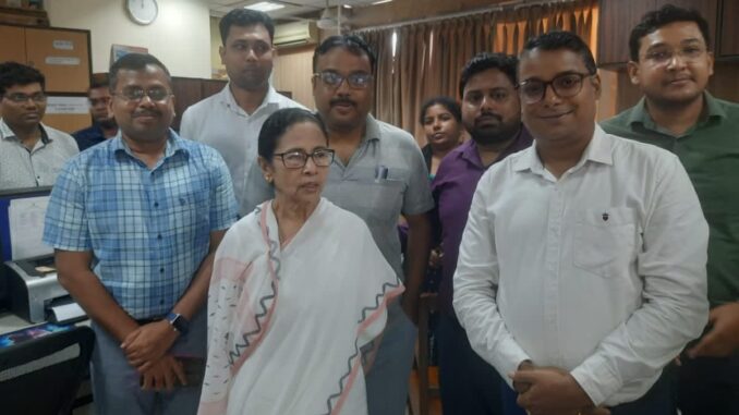 রোজদিন ডেস্ক, কলকাতা:- অতীতে একাধিকবার মুখ্যমন্ত্রী নবান্নের কর্মীদের কর্মসংস্কৃতি নিয়ে উষ্মা প্রকাশ করেছেন। আগেও কয়েকবার আচমকাই কারওকে কিছু না-জানিয়ে বিভিন্ন দফতরের কাজ দেখতে পৌঁছে গিয়েছেন। মঙ্গলবারও একই ঘটনা ঘটল। এদিন দুপুর বারোটা নাগাদ নবান্নে আসার পরই আচমকা মমতা বন্দ্যোপাধ্যায় পৌঁছে গেলেন অর্থ দফতরে।