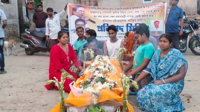 রোজদিন ডেস্ক : ডবল ইঞ্জিন সরকারের রাজ্যে যে বাঙালি শ্রমিকদের জীবনের কোনও দাম নেই সেই বিষয়টি আরও একবার স্পষ্ট হল। ছত্তিশগড়ে বাঙালি পরিযায়ী শ্রমিকের রহস্যমৃত্যু। পরিবারের দাবি, বাংলা বলার জন্যই বাঙলাদেশি তকমা দিয়ে পিটিয়ে মারা হয়েছে তাঁকে। ঘটনার তীব্র প্রতিবাদ জানিয়ে অভিযুক্তদের দৃষ্টান্তমূলক শাস্তির দাবি জানিয়েছেন এলাকার বিধায়ক ডাঃ নির্মল মাজি। পুলিশ সূত্রে খবর, মৃতের নাম বিদ্যুৎ বেরা(৪০)। আমতার গাজিপুরে বাড়ি। ৮ মাস আগে ছত্তিশগড়ের বিলাসপুরের কারাঞ্জিয়ায় কাঠের কাজ করতে গিয়েছিলেন বিদ্যুৎ। বাড়ির লোকেরা জানান, পুজোর পর থেকে বিদ্যুৎ বলতেন ওখানে খুবই আতঙ্কের মধ্যে দিন কাটাতে হচ্ছে। বাংলা ভাষায় কথা বলার জন্য তাঁর সেখানে ভীষণই সমস্যা হচ্ছে। এরই মধ্যে কালীপুজোর পর থেকে তাঁর সঙ্গে যোগাযোগ বিচ্ছিন্ন হয়ে যায়। ফোনেও আর যোগাযোগ হয়নি। এর মধ্যে গত রবিবার সোশ্যাল মাধ্যম মারফৎ জানা যায় বিদ্যুতের দেহ সেখানে রাস্তার ধারে পড়ে রয়েছে। সারা শরীরে আঘাতের চিহ্ন। একথা জানতে পেরেই বাড়ির লোকেরা এলাকার বিধায়ক ডাঃ নির্মল মাজির দ্বারস্থ হন। তিনি তৎক্ষণাৎ মুখ্যমন্ত্রী মমতা বন্দ্যোপাধ্যায়কে বিষয়টি জানান। এরপর মুখ্যমন্ত্রীর নির্দেশে দ্রুত পদক্ষেপ নেয় প্রশাসন। বাড়ির দুজন সদস্য রাজ্য সরকারের সহায়তায় দ্রুত সেখানে যান। শনিবার সেখান থেকে সড়ক পথে বিদ্যুতের দেহ আমতায় নিয়ে আসা হয়।