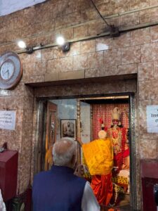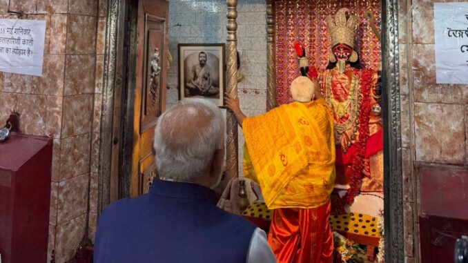 আজ বিকেলে তিনি সেখানে যান। নিজেই সেখানকার দোকান থেকে মায়ের জন্য মিষ্টি, মালা, ফুল কিনে পুজো দেন। আরতিও করেন। পুরোহিত কালীপ্রতিমার ফুল প্রধানমন্ত্রীর মাথায় ঠেকিয়ে আশীর্বাদ করেন।