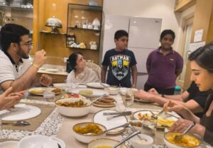 তারপর বৃহস্পতিবার রাতে প্রাক্তন ভারত অধিনায়ক সৌরভ গঙ্গোপাধ্যায়ের বাড়িতে নৈশভোজ সারলেন তারা।সৌরভের বাড়ি থেকে ডিনার করে বেরোনোর সময় কথা বলেন সারা আলি খান ও আদিত্য রায় কাপুর। তারা বলেন আলু পোস্ত, মাছ, আম, দই, মিষ্টি বাঙালি মেন্যু ছিল ডিনারে। এবং এসবই তাদের খুবই পছন্দ হয়েছে।