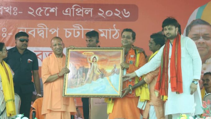 নির্বাচনী উত্তাপে ক্রমশ তপ্ত হয়ে উঠছে নদীয়া জেলার নবদ্বীপ। সেই আবহেই বিজেপির প্রার্থী শ্রুতি শেখর গোস্বামীর সমর্থনে এক বিশাল জনসভা করলেন উত্তরপ্রদেশের মুখ্যমন্ত্রী যোগী আদিত্যনাথ। সভাকে ঘিরে সকাল থেকেই এলাকায় ছিল উৎসবমুখর পরিবেশ এবং কর্মী-সমর্থকদের ঢল।